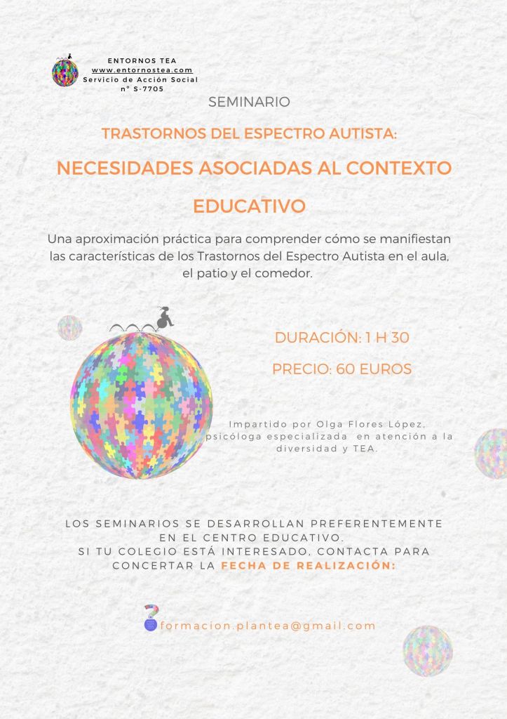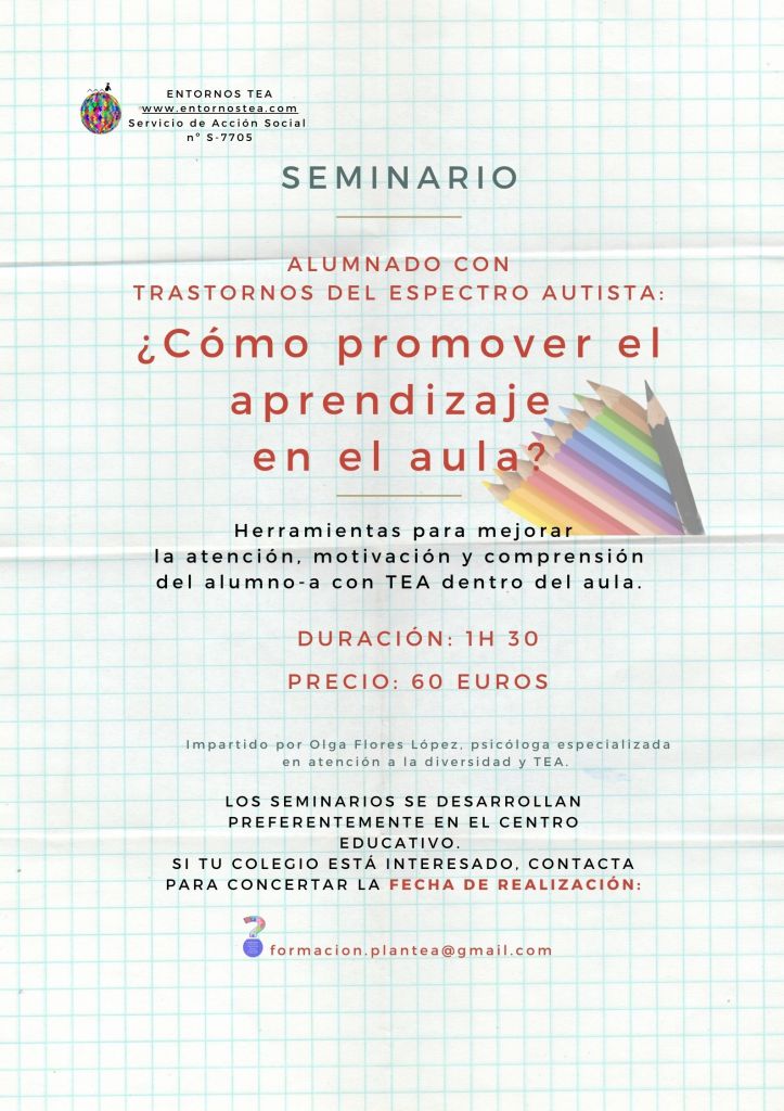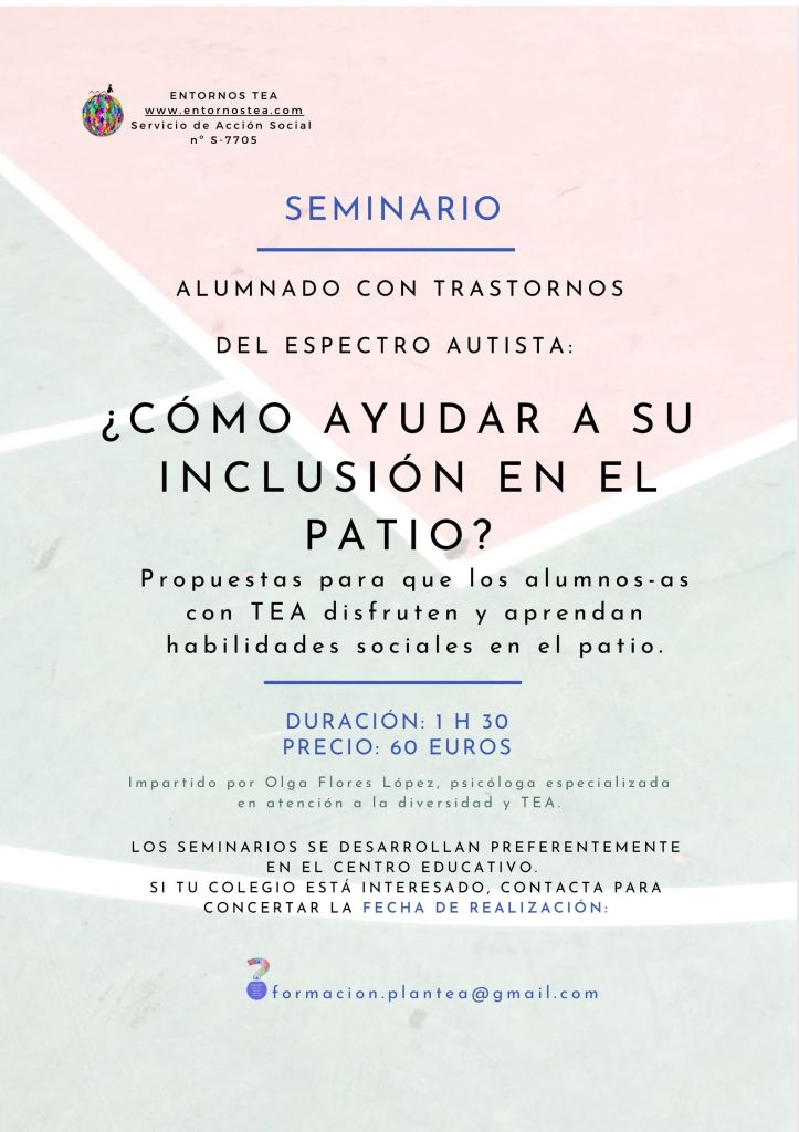 Así nace el proyecto PlanTEA, una propuesta de acercamiento inicial de los centros a las características de los niños y adolescentes con TEA en los principales contextos escolares (aula-patio-comedor), a través de seminarios de una hora y media de duración.